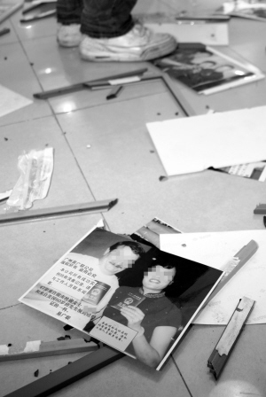 昨天,記者來到位于海珠區(qū)(注:廣州市)江怡路如家快捷酒店上的四樓,其時門口已擠滿了人,有人在激烈的爭辯,現(xiàn)場由10余名警察和保安在維持秩序,會議室內(nèi)的玻璃桌、椅子以及一些掛在墻上的相框被摔在地上,滿地的玻璃片,一片狼藉。在該公司通道拐角處,坐著10余名帶著墨鏡的女子,個別女子情緒激動流著眼淚。據(jù)了解她們來自北京、浙江、吉林、廣西等全國各地,都是來要求退會退費的,她們已經(jīng)集體在這里等待兩天,但是目前仍沒有易廣聯(lián)公司方面的負責人出來和她們面談,中午的時候街道司法所的負責人與她們商討的時候有個別會員情緒激動,于是砸了會議室的桌子和相框等。