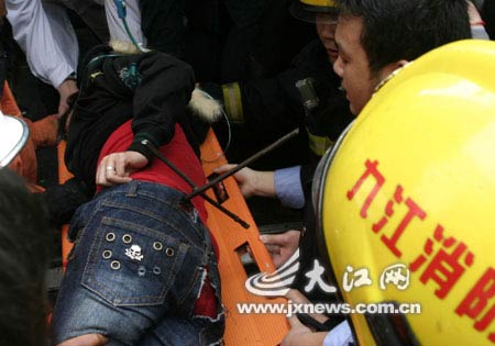 九江消防人員緊急趕到現(xiàn)場(chǎng),經(jīng)過(guò)6分鐘的緊急營(yíng)救,傷者被成功救下送往九江市第一醫(yī)院急救。