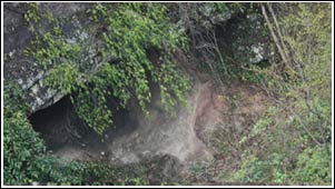 拍攝的實際地點,位于饅頭山和主峰之間。發(fā)現(xiàn)疑似華南虎的新坊村有村民806人,耕地728畝,多為稻田。丹霞地貌的石頭山和林地面積1萬多畝,人口密度較大,從公路到拍攝地點的2公里中,沿途要經(jīng)過4處村民的住宅,沿途還能看見無人看守的家畜在田間吃草。在臨近拍攝點處,還有農(nóng)田和一座村民的牛棚。在拍攝點以上,有一座香火旺盛的廟宇,許多人每天從此路上山。