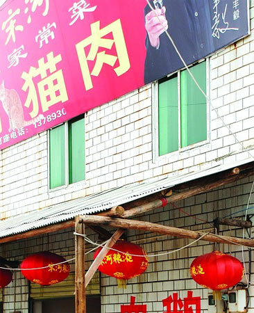 長沙市民王先生給本報(bào)新聞熱線打來電話說,23日中午,他的朋友李先生開車經(jīng)過湘潭市護(hù)潭鄉(xiāng)時(shí),無意中發(fā)現(xiàn)了張老板的店,出于好奇,他來到店里,“老板說貓肉是補(bǔ)品,每斤38元,保證新鮮。我沒吃過,想試試!崩钕壬f,剛點(diǎn)完菜,就聽到廚房里傳來幾聲凄厲的貓叫,他跑去一看,發(fā)現(xiàn)一只頭破血流的花貓?zhí)稍诘匕迳希瑥N師正用木棍猛打它的頭。見貓不再動(dòng)彈,廚師一手拎著貓扔進(jìn)裝滿開水的大鍋里,另一只手捂上鍋蓋。這時(shí),鍋里傳來一陣更慘烈的貓叫,幾分鐘后才恢復(fù)了平靜!疤珰埲塘耍∈裁慈藭(huì)想出做這樣的菜?”等菜上了后,受驚不小的李先生沒動(dòng)筷子就急忙驅(qū)車回家。