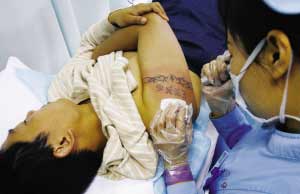 半年前張曉光應(yīng)聘到本市一家大型國企上班,成為一名標(biāo)準(zhǔn)白領(lǐng)。張曉光說,分手的傷痛可以慢慢平撫,但身上的文身卻讓他始終無法真正解脫。公司經(jīng)常組織員工泡溫泉、踢足球等活動,張曉光總是找借口推脫,他害怕自己的文身會在這個(gè)嚴(yán)謹(jǐn)?shù)膰笕莵矸亲h,和同事出差都小心翼翼,擔(dān)心暴露。夏季即將到來,公司規(guī)定員工必須著統(tǒng)一的短袖襯衫,這讓張曉光徹底下了要洗去文身的決定。此外,張曉光說自己是個(gè)誠實(shí)的人,如果將來有女朋友問起文身,自己肯定會如實(shí)相告。與其到時(shí)候影響感情,倒不如趁早抹去這些痕跡,給自己一個(gè)沒有負(fù)擔(dān)的未來。