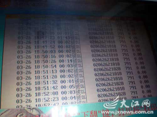 昨日下午,龔先生通過移動公司的自動查詢系統(tǒng)查詢,發(fā)現(xiàn)自3月19日至本月1日,“0206262”給他打來的電話有上千個之多,其中3月26日最為瘋狂,一天有100余個電話打入,僅當(dāng)天18時45分至18時52分這一時段,就有17個騷擾電話輪番“轟炸”,來電號碼以“02062621818”居多。龔先生無奈地說,他的日常生活已受到嚴重影響。