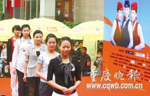 本報(bào)訊 昨日上午,沙坪壩區(qū)三峽廣場數(shù)碼城外,南航“2008中國新空姐招募大匯”開幕。這是繼2006年在全國以海選模式招聘空姐以來,南航第二次采用同樣方式在重慶招募空姐。據(jù)現(xiàn)場組委會(huì)統(tǒng)計(jì),昨天,通過網(wǎng)上和現(xiàn)場報(bào)名的女孩有2000來人,現(xiàn)場有1000多人進(jìn)行了常規(guī)檢驗(yàn),最終留下300人。