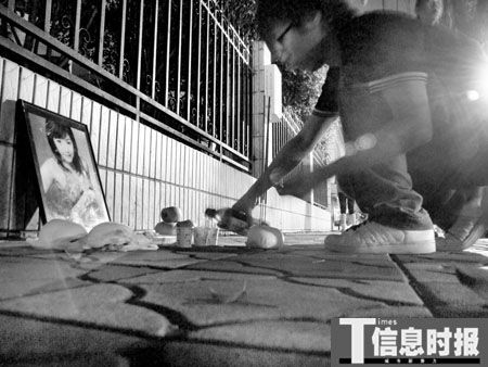 昨日下午,記者在網(wǎng)上看到,譚靜網(wǎng)上紀(jì)念館點(diǎn)擊率已達(dá)11萬多,總拜祭量也達(dá)到3801人,網(wǎng)友們紛紛在網(wǎng)上為譚靜點(diǎn)上一支蠟燭,拜祭其在天之靈!半m然素不相識,但我堅信你是個好女孩!你堅強(qiáng)執(zhí)著,自立自強(qiáng),你心里很苦,只是不愿向人傾訴。不知為何,我心里很沉重,只愿你在天堂再沒有煩惱,快快樂樂……”, 網(wǎng)名為“思念之燭”的網(wǎng)友在紀(jì)念館上為譚靜祝福道。
