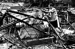 2007年8月10日,陳的復(fù)議申請(qǐng)還沒(méi)有得到答復(fù),等來(lái)的卻是40多名開(kāi)著勾機(jī)車(chē)而來(lái)的“神秘人”。陳煥拱稱(chēng),混亂中不知誰(shuí)喊了一聲“給我砸!”幾個(gè)人沖上前剪斷電匣,勾機(jī)吊臂猛然揮起,“轟轟”幾聲,砸向靠路邊的一排豬舍。短短半個(gè)小時(shí),3000多平方米的豬舍三分之一被夷為廢墟,數(shù)百頭驚恐的豬四處逃竄,一度引發(fā)公路上的人豬大戰(zhàn)。當(dāng)晚,突降暴雨,數(shù)百頭失去遮攔的生豬再次四處逃竄,在臺(tái)風(fēng)暴雨中消失得無(wú)影無(wú)蹤。