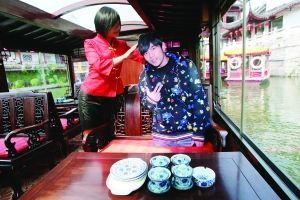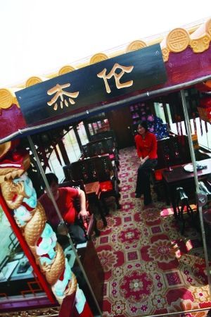“杰倫號”上最特別的就是一幅與杰倫同比例的大幅紙質模特,笑容滿面地坐在原來杰倫坐的位置上,前面的茶幾上還放著杰倫品嘗過的狀元豆、雨花茶。據(jù)稱,這個“模特”可以供游人照相。