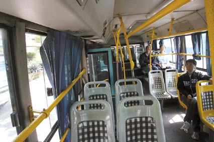 據(jù)介紹,842路使用的是中通客車 (LCK6830G型),兩側(cè)的車窗都是可以打開的,但是除了和售票員并排的兩個座位旁的欄桿設(shè)置位置較低,其余欄桿的位置差不多都在車窗中央,因此在緊急情況下,乘客也很難從打開的車窗中逃離。