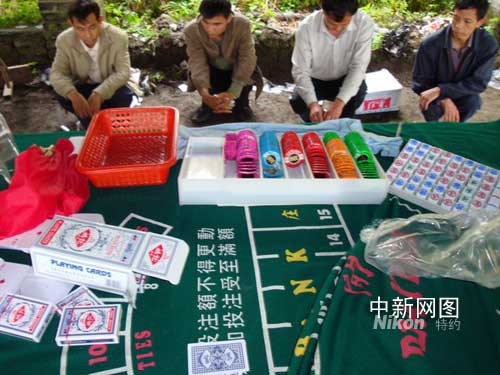 經(jīng)調(diào)查證實,該賭檔莊家專在湖南省汝城縣與廣東省仁化縣交界的荒山野嶺中擺檔,用撲克牌以“百家樂”的方式聚賭,下注金額下限10元,最高5000元,三天前,該賭檔剛從湖南省汝城縣大坪鎮(zhèn)一野外處遷來,沒想到這么快就被仁化縣警方端掉。