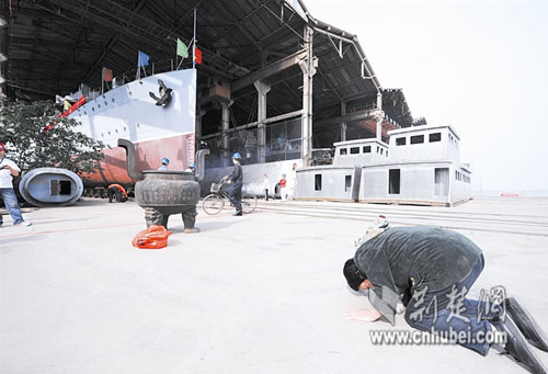 中山艦原定于11日搬家,由于前一段受暴雨影響,考慮到多種安全因素,為確保萬(wàn)無(wú)一失,中山艦移艦下水時(shí)間臨時(shí)調(diào)整到昨日。