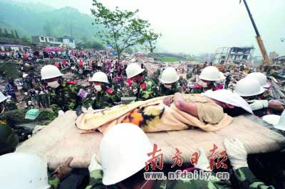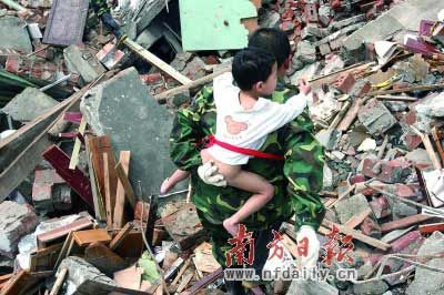 “我一定要找到家里人,死也要死到一起!痹诰d陽市開出租車司機胡女士說。出事后,她開車前往北川找她的愛人。當(dāng)天下午5點多,她趕到時小縣城已面目全非。胡女士徒步來到愛人上班的新城區(qū),在廢墟上大聲叫著丈夫的名字。終于,丈夫有了回應(yīng):“我在這里,背上有塊大石頭!”胡女士蹲下來說:“不要怕,很快有人來救我們了。”為了讓愛人不因為恐慌和失血過多昏睡過去,胡女士跪在地上和愛人談起往事,不斷鼓勵、安慰他。半小時后,巡邏人員發(fā)現(xiàn)他們,胡的愛人獲救。而胡女士本人,則因為長時間跪在一塊碎玻璃上,被割掉一大塊肉。(作者:記者胡亞柱張蜀梅)