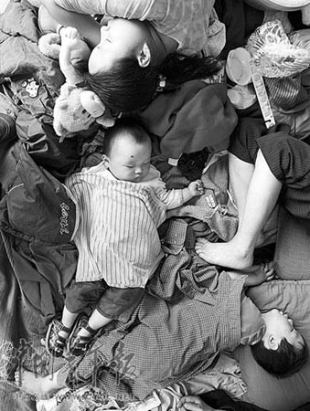 “我們看電視,看到這里災民越來越多,孩子老這樣,怎么行?”周海的妻子非常贊同丈夫的舉動。他們還帶了15歲的兒子一起來,要讓他親身感受一下地震帶來的災害。偌大的體育館內外到處都是打著地鋪的災民,還不斷有災民和從外地趕回來尋親的農民工涌來。