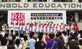 昨日下午2時,由新快報、廣州電臺FM102.7、南方電視臺、新浪網(wǎng)四大媒體攜手廣東省慈善總會,在正佳廣場西北門和廣東新快報社主樓前(天河路533號僑鑫教育大院)兩大主場,舉辦“祈福同胞,愛心飛揚(yáng)———百萬黃絲帶為震區(qū)同胞祈福之全城抗震救災(zāi)募捐大行動”;顒舆在廣州崗頂好又多、天河城、江南西-廣百新一城、天河購書中心-維多利亞廣場、正佳廣場、友誼商店-世貿(mào)、荔灣廣場南門-上下九、中華廣場-流行前線、北京路-廣百、新光廣場-康王路、越富大廈等11個繁華地段設(shè)50個流動募捐點(diǎn),廣州青年志愿者協(xié)會還派出超過300名志愿者。