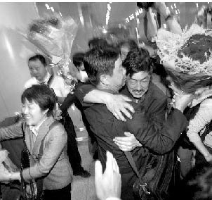 “我們終于活著回來了!弊蛲11點(diǎn)30分,首都1號航站樓,38名北京游客搭乘CZ3904航班平安抵京,迎接他們的是親人激動(dòng)的擁抱和淚水。據(jù)了解,這38名游客是本市首個(gè)從四川災(zāi)區(qū)返回的大型旅游團(tuán),在成都開往九寨溝的途中,他們遭遇地震受困茂縣,度過了“與世隔絕”的56個(gè)小時(shí)。