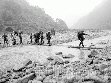 “我們?cè)谶@里等候團(tuán)長(zhǎng)和戰(zhàn)友們回來(lái),他率領(lǐng)部隊(duì)正引領(lǐng)數(shù)百災(zāi)民從高山密林中向漢旺轉(zhuǎn)移!鼻叭19時(shí),有著“烏蒙鐵軍”之稱的解放軍某部團(tuán)政委曾祥明站在亂石嶙峋的綿陽(yáng)河上游河谷中,十分焦急地告訴記者,他們已與團(tuán)長(zhǎng)周宏許所率領(lǐng)的數(shù)百官兵失去聯(lián)系10多個(gè)小時(shí)了。