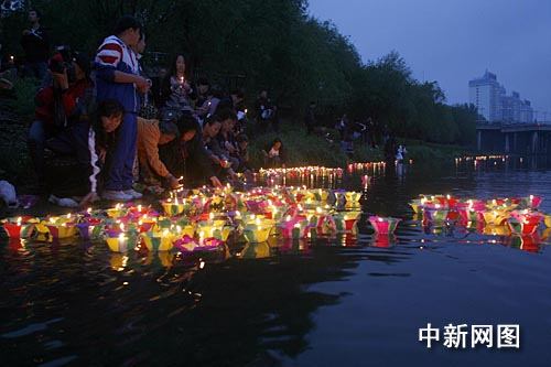 “汶川加油!四川加油!中國(guó)加油!”整齊而有力的聲音回響在松花江邊,漸漸的,雨也停了。眾人手捧河燈沿松花江畔依次排開(kāi),緩緩地將燈推向水中。