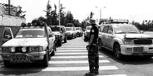 “狼群”車隊(duì)里,個(gè)個(gè)都是大老板、有錢佬,看他們開的車就知道———清一色的四驅(qū)越野車,盡是“悍馬H3”、“途樂Y60”、“豐田4700”等。