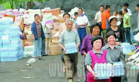 記者隨洛水鎮(zhèn)黨委副書記、發(fā)放救災(zāi)物資的指揮長(zhǎng)宋德芝走進(jìn)政府大院。大院門口由武警把守,這里是洛水鎮(zhèn)收發(fā)救災(zāi)物資點(diǎn)。大門口的右側(cè)放著礦泉水,堆積如山;旁邊是食品,而幾間房子里堆放的是被套!耙蚴瞻l(fā)點(diǎn)改了,現(xiàn)在這里不再接收救災(zāi)物資,只需將救災(zāi)物資全部發(fā)放!彼贿呎f,一邊忙著清點(diǎn)大院的東西。