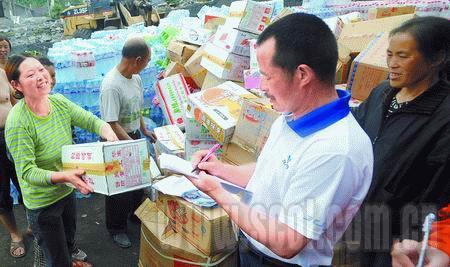 “我們有8個(gè)人,分布在大院的幾個(gè)方位。”他說,每天,來自云南、重慶、貴陽等全國(guó)各地的車輛是一輛又一輛,他們運(yùn)送的有水、面包、蔬菜。采訪中,記者注意到一個(gè)細(xì)節(jié),張華峰把捐贈(zèng)救災(zāi)物資的單位和個(gè)人都親切地稱為“客人”,熱情接待,如實(shí)記錄。令張華峰感動(dòng)的是身邊的一些普通人。負(fù)責(zé)卸貨的武警官兵忙完活之后,他們?cè)匦菹,從不喝一瓶救?zāi)水,吃一塊救災(zāi)面包。等待大卡車裝滿救災(zāi)物資,張華峰將車上物資一一記錄在冊(cè),水50件,方便面60包。洛城村主任方遠(yuǎn)福在登記冊(cè)上簽完字后,坐上卡車出發(fā)了。