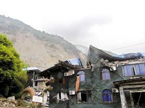 在救災工作安排妥當后,回龍溝溝口傳出消息,有一所“農(nóng)家樂”整體坍塌,死了很多人。