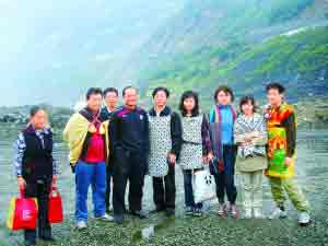 “東西不要了,你們快過來,人最重要”。眼看著山上掉下來的碎石滿天亂飛。我們擔(dān)心著他們?yōu)榱宋覀兊呢斘锒俅蜗萑胛kU。終于,所有人都到了安全的地方。查看傷情時,我發(fā)現(xiàn)杭州電視臺的那位男記者胸部受到了較大撞擊,情況不妙;其中一個央視男記者鎖骨受傷,左臂不能動彈;中國日報的女記者頸椎出了問題,頭不能轉(zhuǎn)了;我的右腳經(jīng)過簡單適應(yīng)勉強能夠蹣跚行走;杭州電視臺女記者鞋子沒了;其他幾人大體無恙。清點人數(shù),一個不少,而遠(yuǎn)處那臺我們曾經(jīng)搭乘的汽車已被砸得像個爛皮鞋。