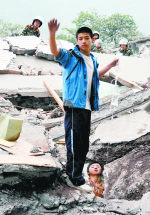 李陽(yáng)并不特別出眾,如果不是這場(chǎng)大地震,他的日子應(yīng)該會(huì)平靜流過(guò)。但是這個(gè)男孩在這場(chǎng)大地震中“非比尋!钡呐e動(dòng),卻成為一個(gè)關(guān)于生命和希望的符號(hào)。