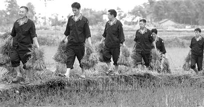 昨日上午,一支由12人組成的志愿者隊找到曾世明:“能不能為你做點兒事?”走在前面的是名40歲左右的男子,他叫靳少云。讓曾世明意外的是,靳少云竟是重慶某公司的總經(jīng)理。跟在他身后的11名男子,都是這家公司的高管。曾世明“很不放心”地把靳少云等人帶到田間,這12名志愿者挽起褲管下田了。拔秧、插秧,一行人干得非常熟練,要不是看到穿在他們身上的統(tǒng)一著裝以及粘貼在他們衣服上的紅十字會標記,還很難讓人聯(lián)想到,他們是呆在辦公室內(nèi)的白領(lǐng)(上圖)。幾個小時后,2畝左右的水田披上了“綠裝”。(記者王仁剛鐘蓉 攝影譚曦)