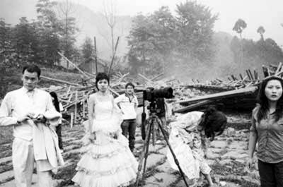 下午4時(shí),現(xiàn)場(chǎng)一家婚紗攝影公司工作車?yán)锏膹V播聲傳來,說四川阿壩藏族自治州的汶川縣位于震中位置。這時(shí),一個(gè)名叫黃芳的新娘開始抽噎。黃芳是藏族姑娘,父母、哥哥嫂子、姐姐姐夫還有4個(gè)孩子都在臥龍,那里恰好是震中!