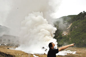 昨天下午3時(shí)35分,北川擂鼓鎮(zhèn)突然升起漫天的煙霧,鎮(zhèn)中心全部籠罩在濃煙之下,部分地方能見(jiàn)度為零(見(jiàn)上圖),F(xiàn)場(chǎng)的中國(guó)疾控中心工作人員說(shuō),煙霧是因消毒干粉、漂白粉等消毒劑自燃產(chǎn)生的。這已經(jīng)是擂鼓鎮(zhèn)三天內(nèi)連續(xù)第三次發(fā)生消毒劑自燃事件。自燃產(chǎn)生的氯氣,共導(dǎo)致近百人出現(xiàn)呼吸困難、嘔吐等癥狀,他們已被送至野戰(zhàn)醫(yī)院救治。