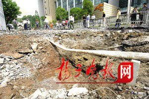 現(xiàn)場(chǎng)有市民稱,當(dāng)時(shí)塌陷有“22米多深”。而記者看到,塌方區(qū)域近30平方米,下陷處深的有3米多,淺的1米多,一臺(tái)挖掘機(jī)正將坍塌的浮土挖走清除。在塌陷處,一個(gè)1米見(jiàn)方的窟窿里,有大量的清水滲出,形成一方小塘。正在搶修的市政工作人員說(shuō),塌方的馬路下面埋著一根直徑1.2米的主供水管,另有一根污水管,還有一根10千伏的電纜,“幸虧這些市政設(shè)施沒(méi)受損,不然后果相當(dāng)嚴(yán)重!”目擊者介紹,當(dāng)時(shí)路上車輛較少,肇事大貨車載重有26噸,經(jīng)過(guò)此地時(shí),突然后輪陷了進(jìn)去,結(jié)果越陷越深,緊接著這里就塌方了。施工人員稱,“二次塌方”可能不大。 范曉林 梅建明
