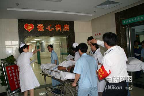 記者坐上載著傷員救護(hù)車(chē),警車(chē)開(kāi)道一路綠燈直達(dá)救治的醫(yī)院,在車(chē)上傷員家屬告訴記者:到處都是我們的親人,一路上大家都很受照顧,已經(jīng)感受到家庭的溫暖。下午四時(shí)許,駛進(jìn)蘇北醫(yī)院,為了迎接傷員,醫(yī)院早就開(kāi)始了準(zhǔn)備,在住院十病區(qū)開(kāi)辟了 “愛(ài)心病區(qū)”。王靜成院長(zhǎng)稱,這是我們醫(yī)院最好的病房,醫(yī)院為四十名災(zāi)區(qū)傷員親人配備了經(jīng)驗(yàn)豐富的醫(yī)護(hù)人員,確保醫(yī)療安全,盡量降低致殘率,讓他們安心治病、早日康復(fù)。