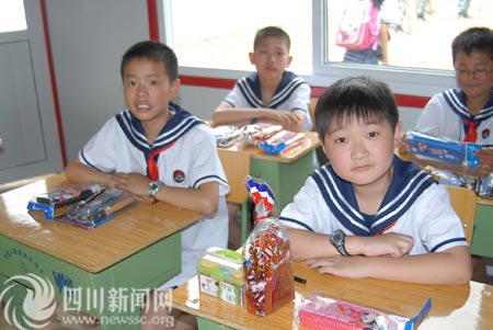 5月31日下午,中國人民解放軍海軍政治部援建的天河海軍小學正式掛牌成立,這也是綿竹市第一所受災后新建成的小學校。明天,天河海軍小學的孩子們可以在新建立的校園內(nèi)過六一兒童節(jié),這批孩子也是綿竹受災后首批返回校園的孩子。