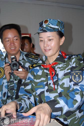 海軍少將宋祖英赴四川綿竹和小學(xué)生過兒童節(jié)(圖)(2)