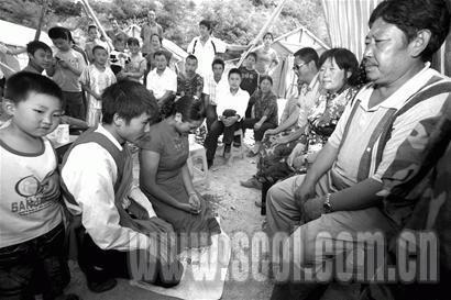 既然要結(jié)婚,就應有一頂帳篷作洞房。王小波所在雙河村黃巖組的干部5月31日趕緊去找?guī)づ。但找來找去,最后只找到一頂白色帳篷?/p>