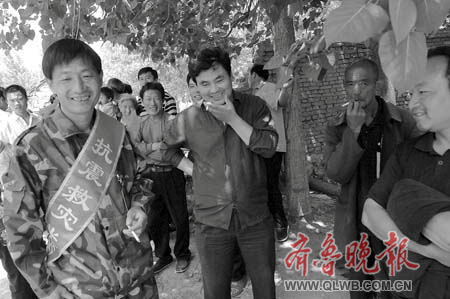 村頭的大樹(shù)上掛著“歡迎抗震救災(zāi)英雄回家”的紅色條幅,全村的父老鄉(xiāng)親都涌了出來(lái),站在小路邊夾道歡迎,十個(gè)人一下車(chē),鞭炮聲便響個(gè)不停。鄉(xiāng)親們摸摸這個(gè)、瞧瞧那個(gè),想看看平日里見(jiàn)慣了的這幾個(gè)人是不是突然長(zhǎng)了三頭六臂。