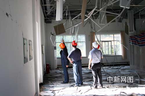 甘肅設(shè)計(jì)院技術(shù)人員察看早陽(yáng)變電站主控樓受損情況。作 者:邱福榮