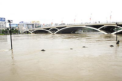 由于漓江水位的上漲,兩江四湖景區(qū)的木龍湖防洪閘已經(jīng)關(guān)閉,位于桃花江和漓江的兩個(gè)主要碼頭——文昌橋碼頭和六匹馬碼頭已經(jīng)被淹停止使用。據(jù)了解,受漲水影響,9日晚,兩江四湖游停止漓江和桃花江段游覽,改為內(nèi)湖游覽。內(nèi)賓由知音臺(tái)碼頭上下船,外賓在日月灣碼頭上下船,內(nèi)賓票價(jià)由149元降為100元。