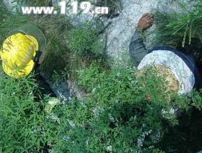 經(jīng)過艱難的努力,兩名戰(zhàn)士攀到側(cè)面,沿著縫隙勉強(qiáng)往下去,消防隊員急忙把救援繩拋給懸于半空的戰(zhàn)士。在大家的齊心協(xié)力下,終于把這名婦女就上來,救護(hù)車馬上把傷者送到醫(yī)院治療。