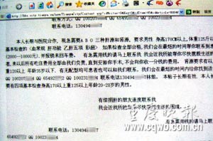 近日,天涯網(wǎng)上一則求捐肝源的帖子引來(lái)眾多網(wǎng)友的關(guān)注,但回帖率最高的不是網(wǎng)友們的評(píng)論,而是一則“有償捐獻(xiàn)”器官的小廣告。昨日,重慶志同律師事務(wù)所陳昊律師警告稱,“有償捐獻(xiàn)”器官是一種違法行為。