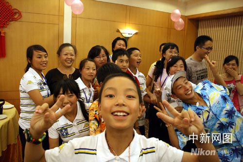 晚上9點(diǎn)10分,旅美華僑林鴻飛女士從相館拿回大家相片,孩子們拿到相片后,爭(zhēng)著讓愛(ài)心叔叔阿姨簽名留電話(huà),還有的孩子干脆讓愛(ài)心叔叔阿姨就在自己白色衣服上簽名留言。當(dāng)海南電視臺(tái)記者高丹拿著一疊相片來(lái)到孩子們中間時(shí),“高丹姐姐,我也送你一張合影照片!”只有幾歲的東東嘻笑著小臉,把一張集體合影送到高丹手上……