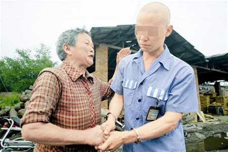 正說著,父親跌跌撞撞地跑過來。“兒子,您要是不好好改造,我這把老骨頭也許再看不到你了!”回頭看見陪同在鄧某身后的獄警負責(zé)人范仲根時,老人一把拉住他的手,突然間跪倒在范仲根前嚎啕大哭!岸嗵澞銈冏屛覀儓F聚,不然我這把老骨頭真的難以見到兒了!”鄧的父親在地震中左肩受傷,經(jīng)治療后已基本恢復(fù)健康。范仲根把監(jiān)獄為鄧某特意準(zhǔn)備的500元災(zāi)后慰問金遞上去,老人怎么也不肯收。老人說,能讓他們父子見面已感激不盡,再也不能給政府添麻煩。在其他干警勸說下,老人這才接過慰問金。一行人在鄧家?guī)づ駜?nèi)落座后,鄧某的父親又先后3次下跪,以示對監(jiān)獄管理局的感謝。