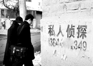 “這兩年,很多名牌大學的畢業(yè)生,尤其是學法律專業(yè)的,因為‘夭折’在國家司法考試,最終選擇投身私家偵探行業(yè),一來他們有文化知識和理解能力上的優(yōu)勢,二來這個職業(yè)也可以給他們帶來豐厚的收益,這對畢業(yè)生來說,是一個風險與收益并重的選擇。”韓冰對他們夫妻的評價甚高,稱他們?yōu)椤案咚刭|(zhì)人才”。而韓冰本人,干了半輩子公安,曾做過刑警大隊的隊長。