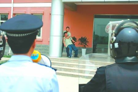 “張某,你已經(jīng)被包圍了,放下手中的兇器舉手投降,這是你唯一的出路!否則,你將承擔嚴重的法律后果!”宣教組對“罪犯”進行勸說教育!吧購U話,叫監(jiān)獄領(lǐng)導來!不傷害人質(zhì)可以,你們給我準備兩萬塊錢,再準備一輛車,我就放了他!”張某惡狠狠地說,并把玻璃頂在李某的喉部,李某直叫“救命”。