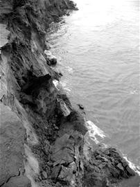 昨日(6月19日)上午,記者在長江黃州赤壁外灘看到,坍塌段江堤仍陸續(xù)有一些大塊土方不斷掉入江水中,長達2000米的江岸出現(xiàn)塌陷,最大塌陷寬度達8米,李家洲林場在岸邊栽種的防洪林,已有不少崩入江水中。