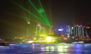 。ㄖ貞c)市城市照明管理局的曾科長(zhǎng)表示,6月21日20點(diǎn)40至21點(diǎn)之間,朝天門廣場(chǎng)周圍進(jìn)行了激光燈表演,但是沒(méi)有添加燈光效果的圖案和文字。