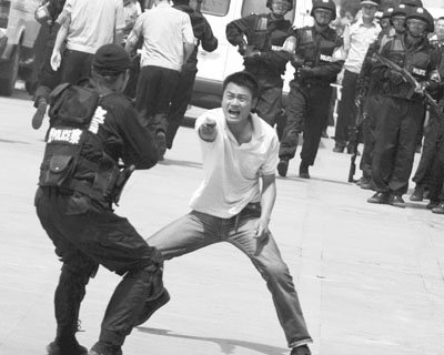 6月21日上午,太原火車站第四候車廳突發(fā)爆炸,旅客受傷,歹徒就出沒在現(xiàn)場,情況緊急,太原鐵路公安局緊急出動,處置不明爆炸物、撲救火災、搜索爆炸物、拆除爆炸裝置、抓獲歹徒、解救出人質(zhì)。半個小時的時間,成功地解除了危機,完成了迎奧運保安全反恐防暴實戰(zhàn)演練。