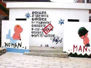 作者自述:聽當(dāng)?shù)鼐用裰v,這本來只是一座很普通的公廁,后來畫上卡通畫、配上搞笑的文字,最可愛的是一個大大的“已閱”紅印蓋在打油詩上。我猜想,這個做外墻裝飾的弟兄是不是剛失戀,將自己的滿腔感受在廁所外墻上來了個寫照?