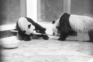 前晚,“希望”和“偉偉”住進(jìn)武漢動(dòng)物園熊貓館后,先花10余分鐘把臥室嗅了個(gè)遍,熟悉環(huán)境后,抱著飼養(yǎng)員送進(jìn)的竹子吃起來。臨睡前,飼養(yǎng)員給它們送進(jìn)一盆水,喝光后,兩個(gè)小家伙對(duì)鋁合金水盆產(chǎn)生了濃厚興趣,把它當(dāng)玩具拖過來,拉過去,搶到手后就用嘴咬,將嶄新的水盆咬得像篩子。