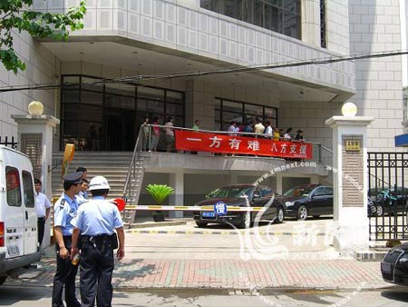 事故現(xiàn)場(chǎng),閘北區(qū)政法大樓。 新民網(wǎng) 沈文林 攝