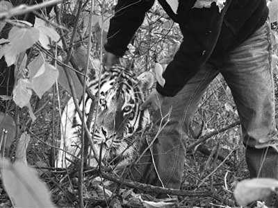 工作人員模擬當(dāng)時拍攝“虎照”情景