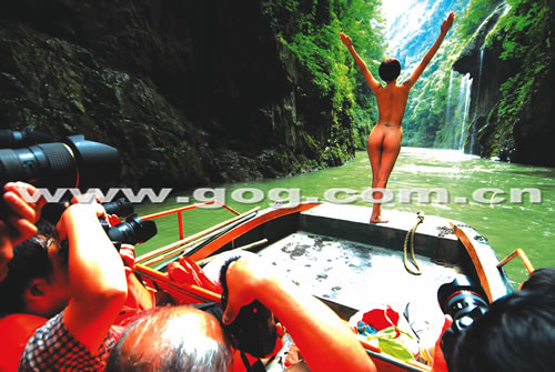 這幾天,由中國藝術(shù)攝影學(xué)會(huì)、貴州省攝影家協(xié)會(huì)聯(lián)合主辦的貴州南江大峽谷全國攝影挑戰(zhàn)賽正在舉行。來自全國各地的攝影大師、愛好者云集南江大峽谷,在游人如云的風(fēng)景區(qū)內(nèi)進(jìn)行被人視為“另類”的人體攝影。